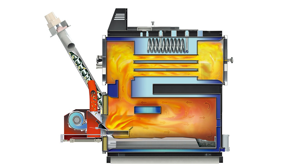 Пеллетный котел состоит из 4-х основных частей: горелка, теплообменник, система топливоподачи и бункер для хранения пеллет. Горелка Горелки бывают принципиально 2-х видов: ретортные и стокерные. Ретортные горелки представляет собой чашу, в которой происходит процесс сжигания. Пеллеты поступают в горелку снизу. Пламя распространяется вертикально. Данный вид горелки позволяет сжигать пеллеты любого качества. Она вообще не прихотлива к качеству пеллет. В стокерных горелках пламя распространяется горизонтально (вставная горелка). Очень прихотливы к качеству пеллет. Это обусловлено конструктивом горелки. При использовании пеллет с повышенной зольностью, в которые при производстве была добавлена кора, кокс который будет образовываться при процессе сгорания, будет забивать горелку и она будет затухать.
